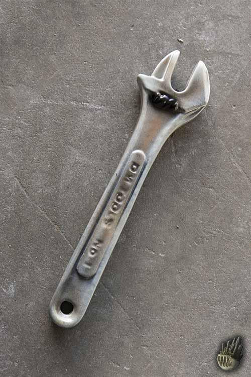 Der Wrench No.1 von Dark Moon ist ein realistisch aussehender Schraubenschlüssel mit offenem Ende, der als Wurfwaffe verwendet werden kann. Der Wrench No.1 ist so modelliert und handbemalt, dass er wie schweres Metall aussieht. Er ist 32 cm lang und hat einen 25 cm langen Griff mit der Aufschrift \"DM Tools No. 1\" an der Stirnseite. Der 8 cm breite Kopf mag früher verstellbar gewesen sein, aber die Apokalypse hat dazu geführt, dass seine Backen fest sitzen.