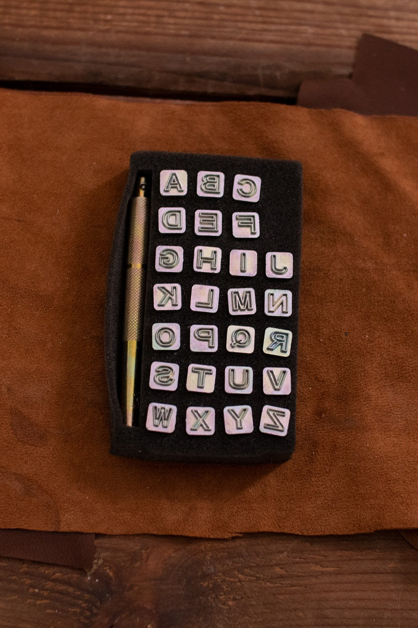 Das Punziereisenset Alphabet BLOCK ist perfekt, um deinem Leder eine persönliche Note zu verleihen. Bestehend aus 26 Stempeln und einem Griff.