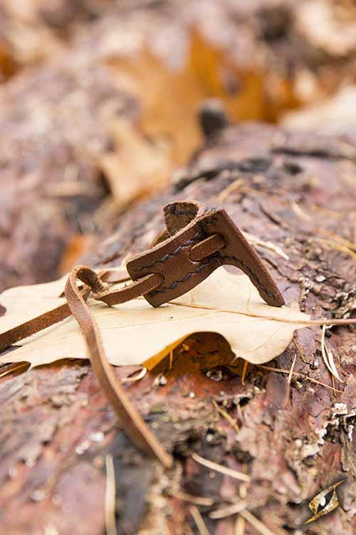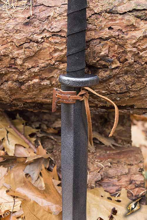 Der Haken ist aus braunem, strapazierfähigem Leder gefertigt und mit einer Lederkordel vernäht. Bei regelmäßiger Lederpflege behält er seine Form und übersteht auch die Strapazen eines LARP. Mit seinem neutralen Aussehen passt er zu fast jeder Waffe. Kombiniere ihn mit einem unserer Schwerter ohne Parierstange oder mit einer Waffe, die die schlechte Angewohnheit hat, sich von deinem Gürtel zu lösen.