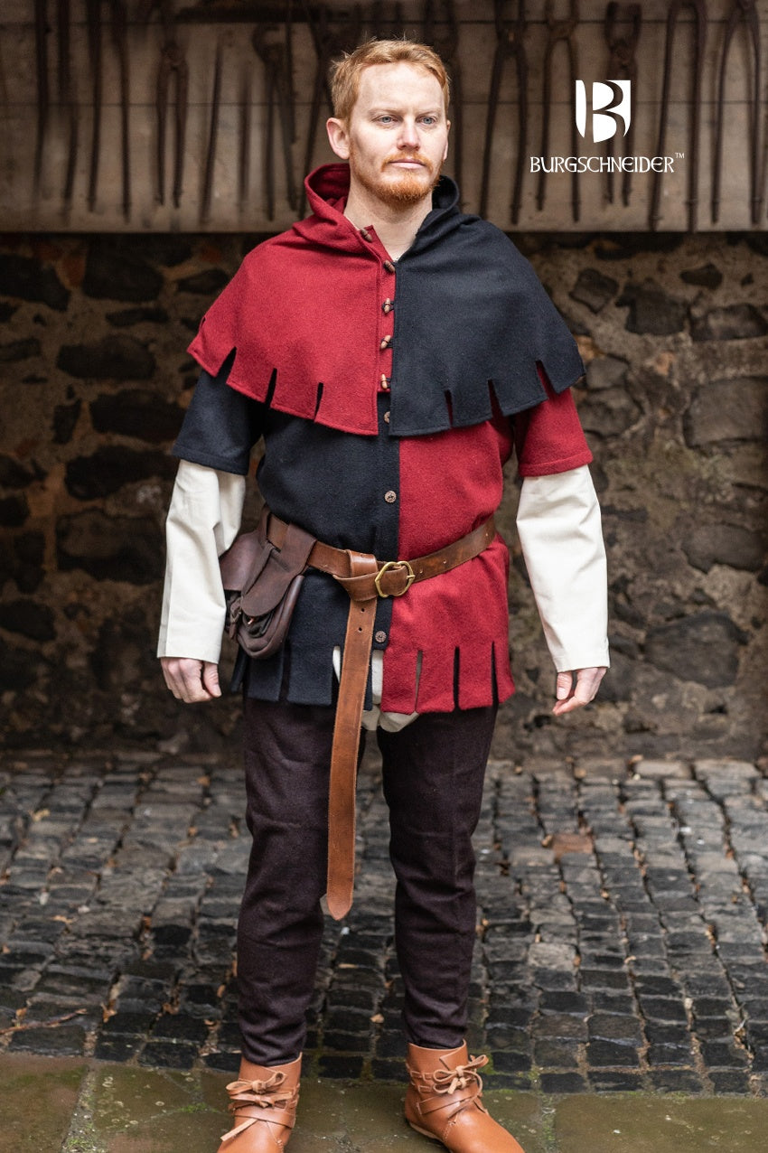 Die Gugel “Dangereuse” aus unserer mi-parti Linie ist orientiert sich an einer eng anliegenden Kapuzenform funktionalerer Kleidung des Mittelalters und ermöglicht durch anpassbare Farben einen ganz individuellen Look.