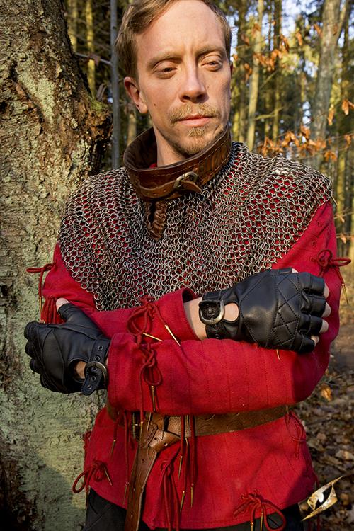 Epic Armoury's Epic Black Celtic Gloves Leather sind fingerlose Lederhandschuhe mit kurzen Stulpen. Sie sind aus schwarz gefärbtem Leder gefertigt und an allen Nähten um die Finger, Handgelenke und Kanten genäht. Diese Nähte verbessern die Festigkeit des Materials, indem sie verhindern, dass es sich bei starker Beanspruchung oder durch Umwelteinflüsse verformt. Die Passform der Handschuhe kann mit einem Lederband um das Handgelenk eingestellt werden.