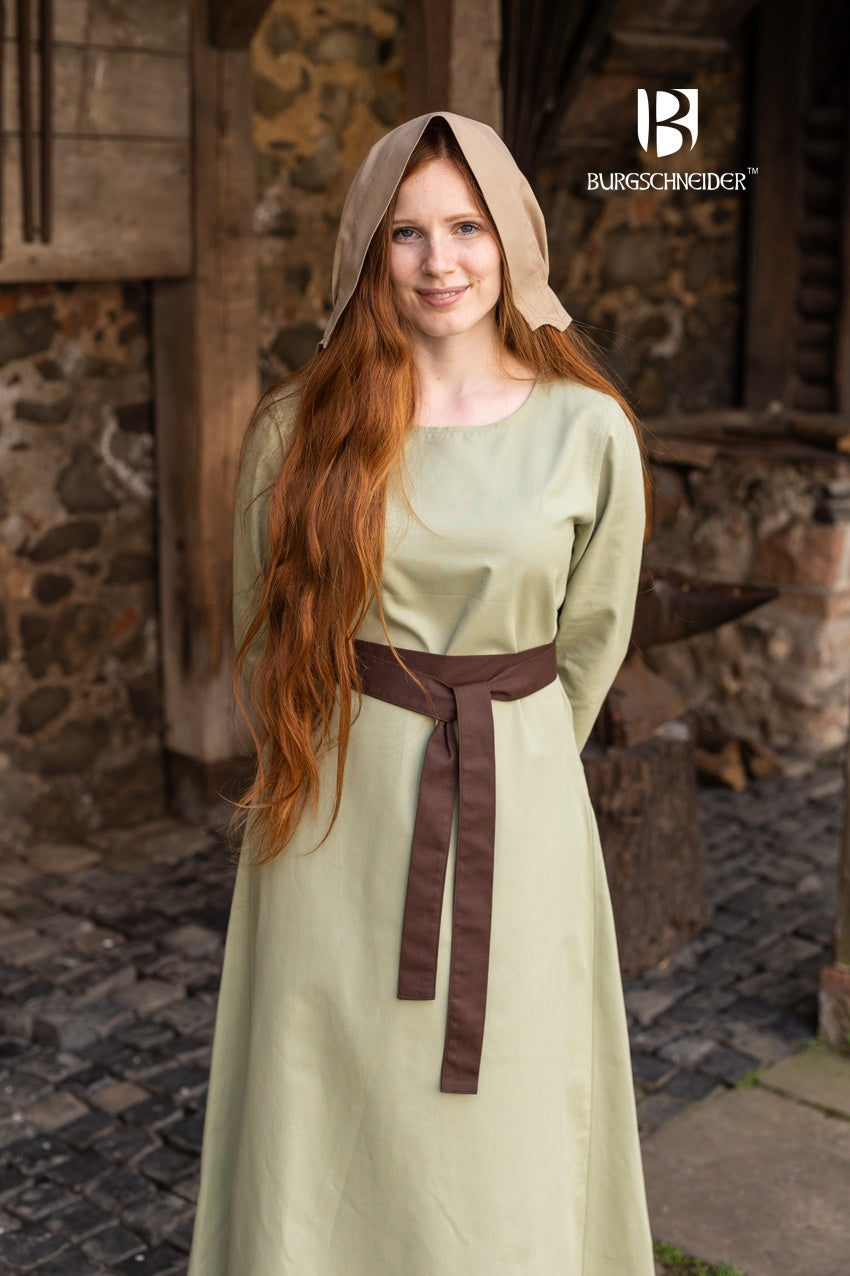 Der schlichte, aber elegante Gürtel Hedwig ist das perfekte Accessoire für viele Kleider und Röcke. Er wird vorne geschnürt und lässt sich leicht an- und ausziehen, und der Faltenwurf des Stoffes zieht die Blicke auf sich. Er ist eine solide Wahl, um eine breite Palette von Mittelalter- oder Fantasy-Kostümen zu vervollständigen.