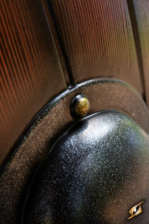 Der Wikingerschild von Epic Armoury ist ein runder 80 cm langer Latexschild, der von den Wikingern und Sachsen aus der Zeit vor dem 10. Mit einer hölzernen und glatten, strukturierten Vorderseite und einer eisernen Lackierung wird dieser Schild deine Mitstreiter auf dem Schlachtfeld in Kombination mit einer Wikingeraxt beeindrucken. Die leicht konvexe Form und der Eisenbuckel auf der Vorderseite sorgen für einen Vorteil im Kampf. Die schlichte Holzstruktur auf dem Schild ist einfach und bietet eine großartige Leinwand, um Ihre eigenen Insignien und Embleme zu erstellen.