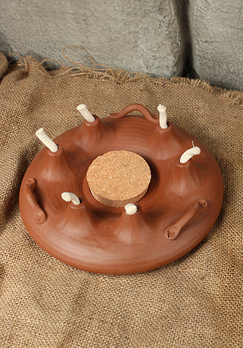 Diese handgefertigte Öllampe ist aus Ton gefertigt und bietet eine gemütliche Atmosphäre in jedem Lager, wie keine andere Lichtquelle.