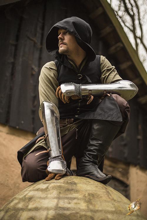 The Bazuband is fully usable with other Epic Armoury metal products, giving you the freedom to customize your character’s costume. Made of 1 mm thick mild steel and vegetable-tanned leather straps and fittings, this armour piece is built to withstand the abuse of a LARP or reenactment with regular leather and metal armour care.