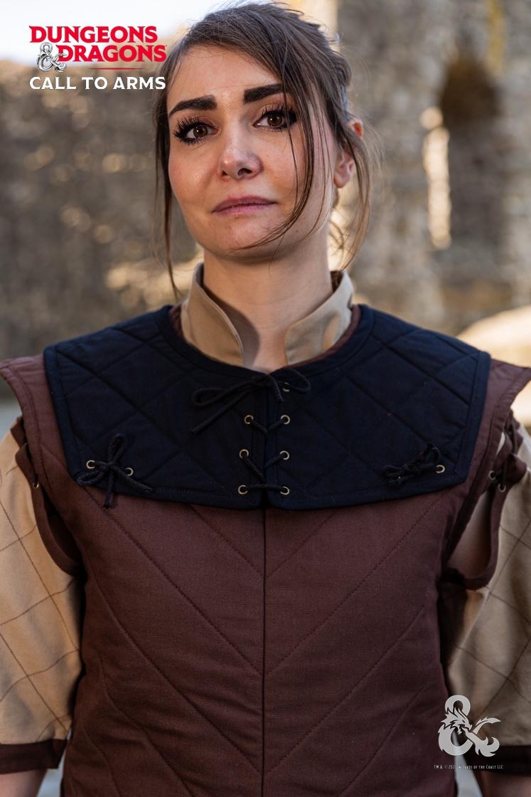 Providing warmth and protection, the D&D Fighter gorget is a great addition to any warrior character concept. The quilted and padded shoulders are perfect for keeping you comfortable, and the rounded neckline provides a flattering style. Plus, the lace detailing at the center front and center back adds a touch of elegance. Whether you’re on cold nightly patrols or are looking for some added padding underneath your trusty armor, this gorget is a must!