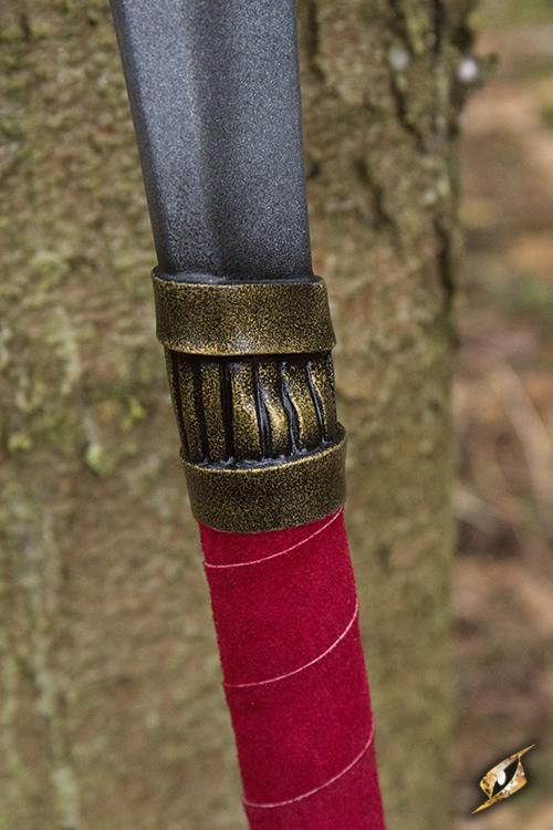 Epic Armoury’s Guandao is a 170 cm latex polearm inspired by Chinese martial arts. Similar to a Japanese naginata or a European glaive, this guandao features a large 69 cm blade and 80 cm long staff. Hand painted and sculpted, the finished result is a beautiful weapon with a long single-edged spearhead. Sculpted golden details give additional character where the spearhead meets the red leather wrapped pole. Add a ring or a scrap of fabric through the hole in the blade to set it apart from the crowd.