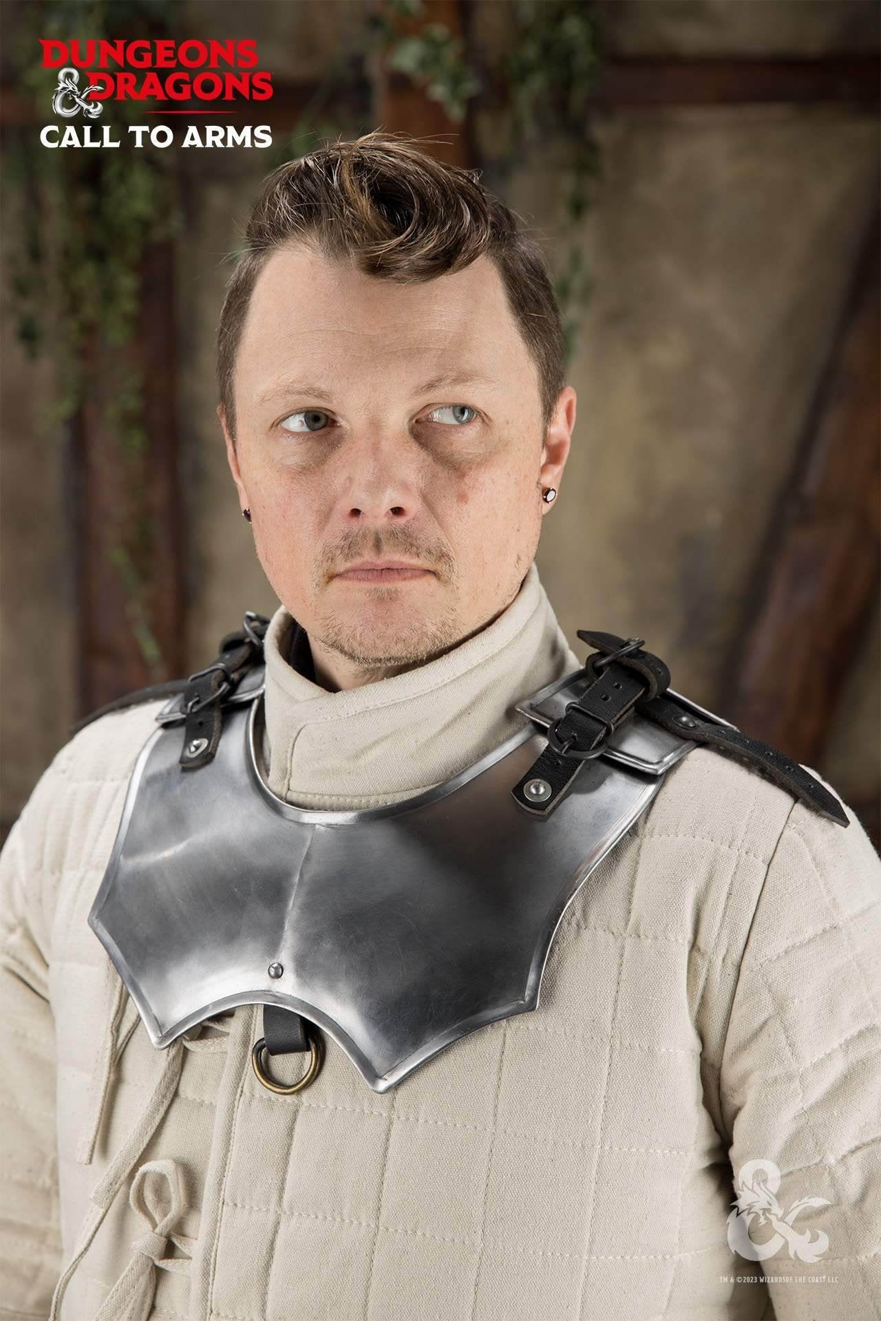 Complete your battle ensemble with the Dungeons & Dragons Steel Gorget, a polished neck guard crafted for fighters who face danger head-on. Designed for coverage of the throat and upper chest, this robust yet elegant gorget delivers both functionality and a finishing touch to any armor set, making it an ideal choice for a wide range of character concepts from noble knights to opportunistic sell swords.