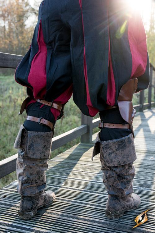 Made of hard top-grain leather, these armour pieces are built to withstand the abuse of a LARP or reenactment with regular leather care. Two leather straps are used to keep each of the Noble Poleyns in place. Brass eyelets along the shins and at the top of the poleyns can be used to attach to thigh and shin guards. Worn on their own or with an entire set of armour, these Noble Poleyns are sure to add some class to your costume.