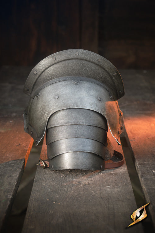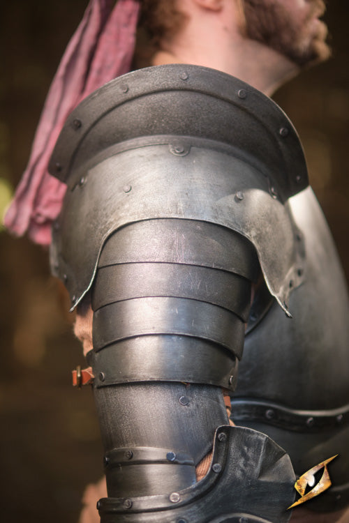 The Captain Pauldrons provide sovereign shoulder protection and are made from mild steel in Epic Dark and Epic Grey colours to emphasise honour and servitude. It is designed with a characteristic haute-piece that provides extra protection for the neck.