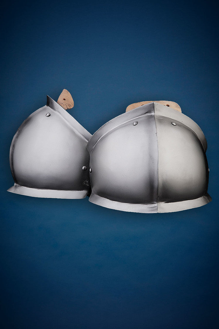 Safeguard your knees in battle with these knee cops, inspired by medieval designs. Much like elbows, knees are a vulnerable target in the heat of battle, so getting the proper protection is essential. The secure leather strap and buckle system at the back keeps the knee cops firmly in place, so you can focus on your adventure without any distractions or discomfort. They're a great choice for historical reenactment, cosplay events, or creating historically inspired characters.