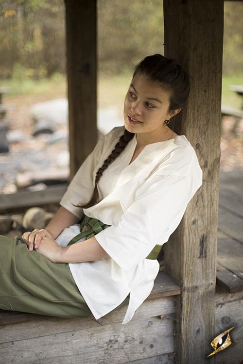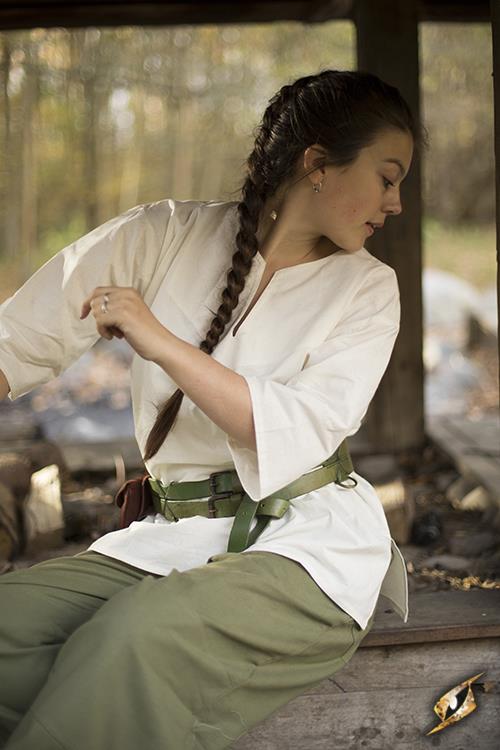 Das neue Odin-Hemd von Epic Armoury ist ein Kleidungsstück im Stil des frühen Mittelalters mit einem langen, v-förmigen Ausschnitt, das sowohl auf Komfort als auch auf Stil ausgelegt ist. Es fällt knapp über die Hüfte und ist aus bequemer, gefärbter Baumwolle gefertigt. Dieses Hemd ist ein äußerst vielseitiges Kleidungsstück, das sowohl als eigenständiges Kostüm als auch als Basisschicht für ein komplizierteres Design dienen kann. Die ¾ langen Ärmel haben eine lockere Passform, perfekt für die Arbeiterklasse oder den Soldaten.