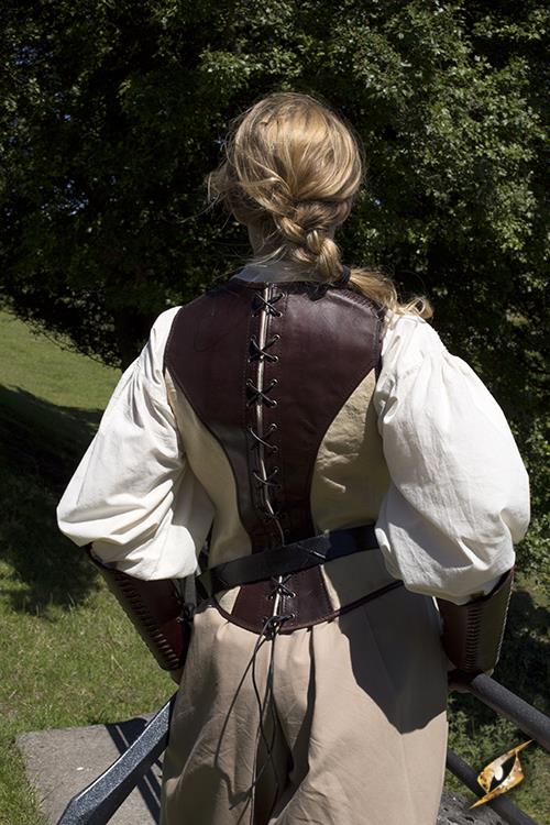 Das Rogue Corset von Epic Armoury ist ein Unterbrustkorsett aus Leder, das den Unterleib schützt und gleichzeitig dafür sorgt, dass Sie selbstbewusst aussehen und sich sicher fühlen, wenn Sie auf der Straße überleben. Die Passform des Korsetts ist dank der Lederschnürung auf dem Rücken sowie der Canvas-Riemen an den Seiten, den Schultern und auf der Vorderseite sehr gut anpassbar. Das Lederkorsett ist mit Canvas-Akzenten auf dem vollnarbigen Leder verziert. Bei regelmäßiger Pflege des Leders können Sie davon ausgehen, dass das Rogue Corset lange hält. Verwenden Sie dieses Korsett, um ein einschüchterndes Statement abzugeben oder Ihre Ausrüstung aufzuwerten.