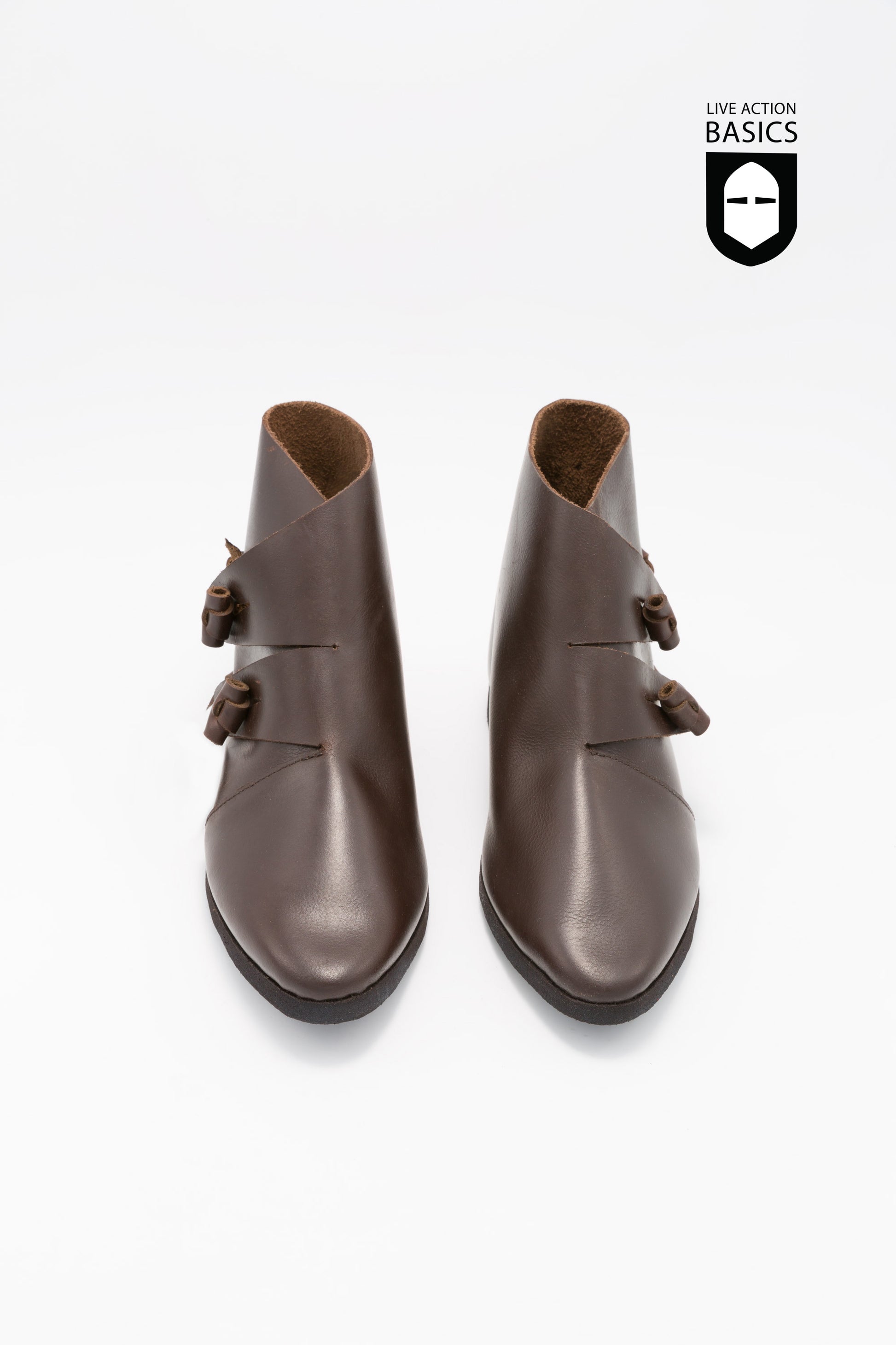 Mit diesen historisch inspirierten Schuhen aus hochwertigem Leder tauchst du in eine längst vergangene Zeit ein. Diese Schuhe eignen sich perfekt für Reenactments, Mittelalterfeste oder LARP und versprühen einen authentischen Charme. Die Stollensohle sorgt für Komfort und Haltbarkeit. Der Schuh lässt sich über zwei Laschen, die mit Lederbändern zusammengebunden werden, verschließen.