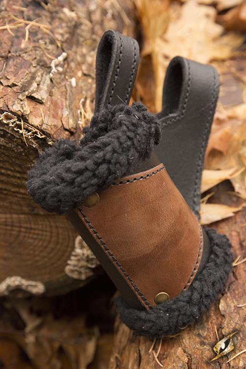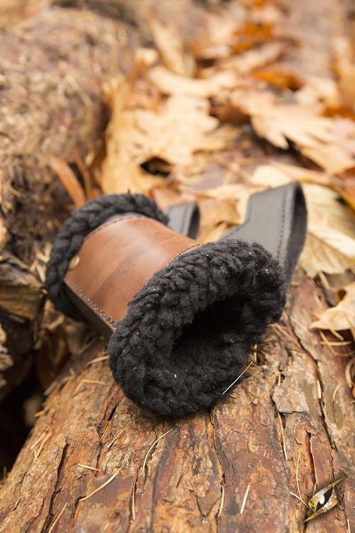 Kombinieren Sie diesen Black Fur Holder mit jedem Charakter, den Sie ausrüsten möchten, indem Sie den Halter durch die 4,5 cm lange Gürtelschlaufe an Ihrem Gürtel befestigen. Aus chromgegerbtem, vollnarbigem Leder gefertigt, an den Rändern vernäht und mit Messingnieten verstärkt, ist dieser Waffenhalter so gebaut, dass er bei regelmäßiger Lederpflege seine Form behält und dem Missbrauch bei einem LARP standhält.