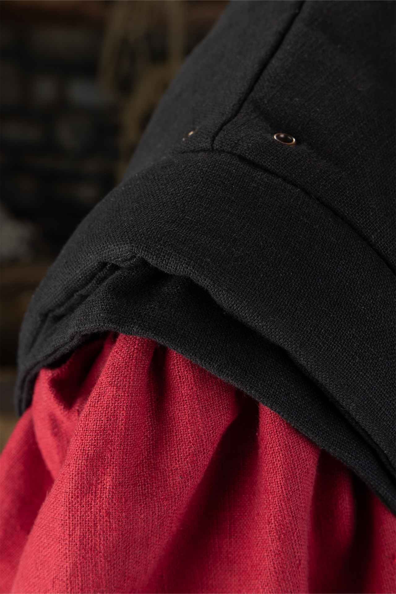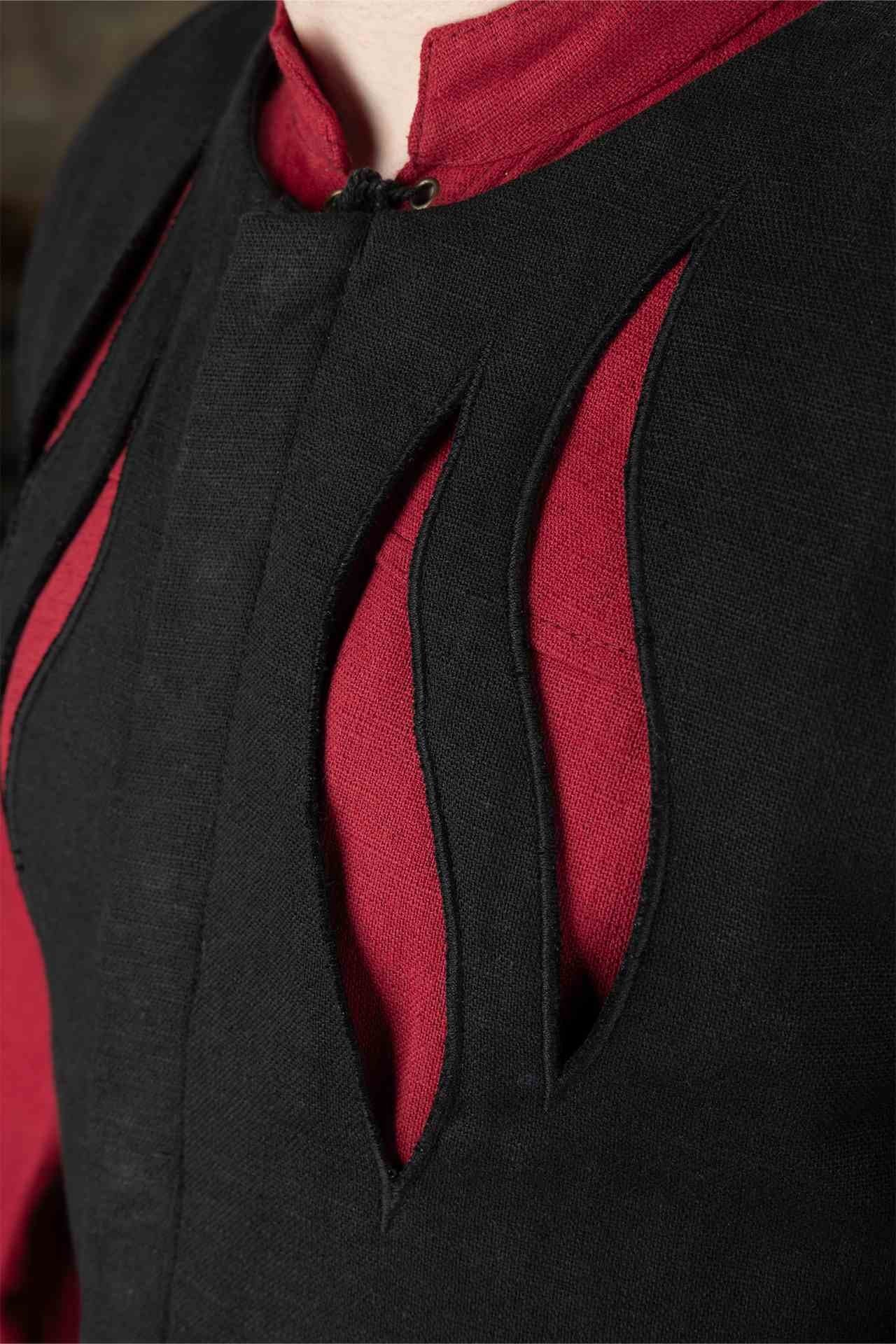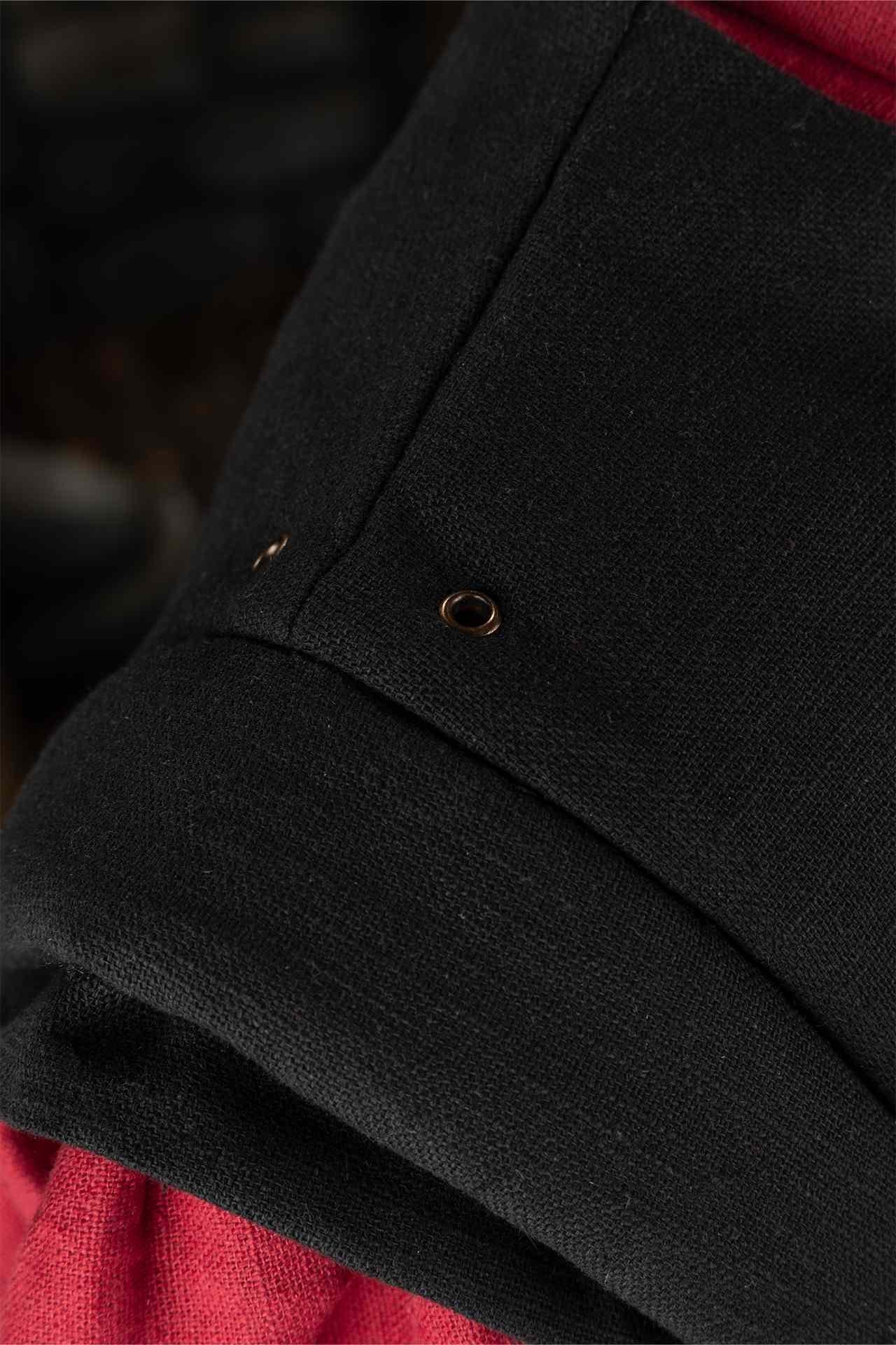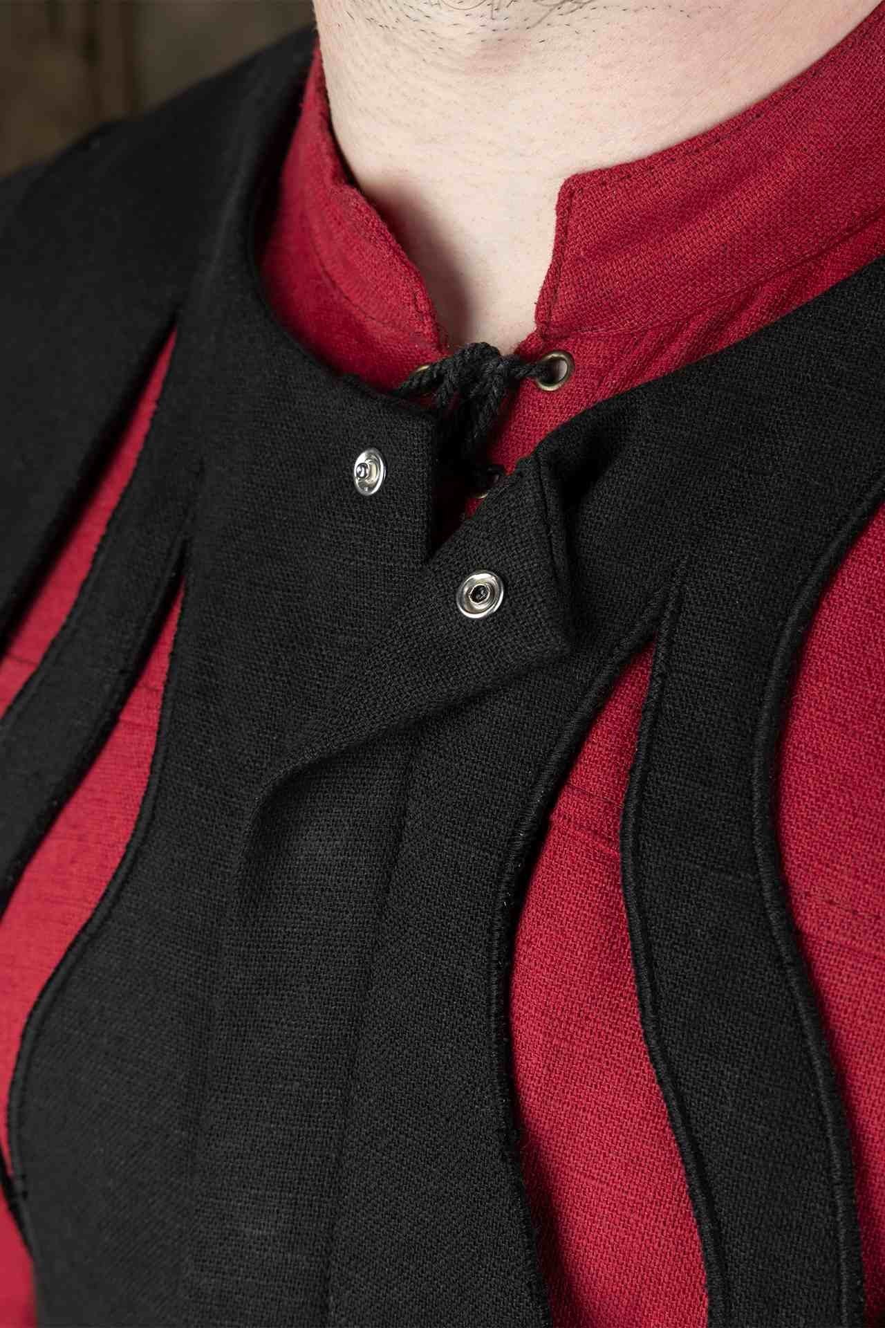 Dieses Wams besteht aus robusten Materialien mit verstärkten Nähten und bietet sowohl Flexibilität als auch Widerstandsfähigkeit, wodurch es sich ideal für den Kampf, zeremonielle Anlässe oder den Alltag eignet. Die konturierte Paneelverarbeitung verbessert die Beweglichkeit und sorgt gleichzeitig für eine strukturierte und imposante Silhouette. Aufwändige genähte Details entlang der Brust verleihen einen Hauch von Raffinesse und spiegeln das Prestige imperialer Krieger wider.